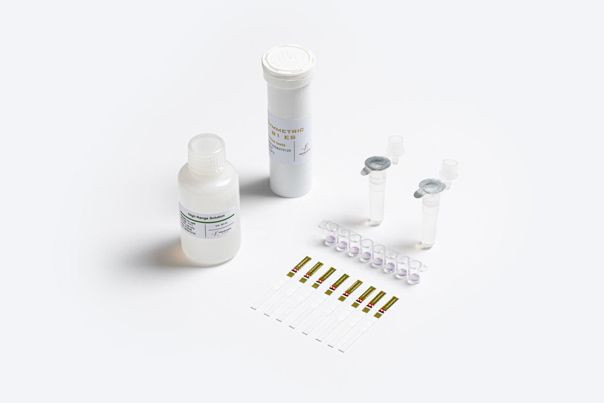 Symmetric B1 ES is an innovative Lateral Flow test that utilizes state-of-the-art features for the quantitative determination of Aflatoxin B1 (AFB1) in grains, cereals, nuts and animal feed. This rapid test in strip format uses an organic solvent for the extraction step, making it ideal for complex matrices.
