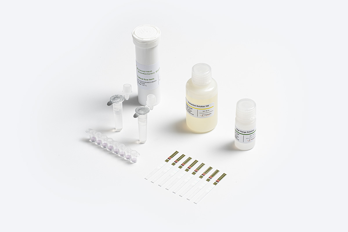 Symmetric OCHRATOXIN Coffee is an innovative Lateral Flow test that utilizes state-of-the-art features for the quantitative determination of Ochratoxin A (OTA) in coffee. This rapid test in strip format uses an organic solvent for the extraction step, making it ideal for complex matrices.